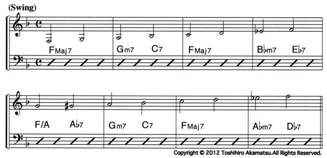 自分のソロ(インプロ)に何となく説得力が欠けるとか、イマイチ割り切れていない感じがしている・・・・などの問題の多くには、このインターバルを利用する事で「解決への兆し」が見えてくる事があります。