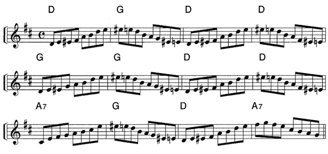 そこで移動ド相対音感的に、そもそもブルースを習得する時のキーをシャープふたつのDメイジャーに据えた。