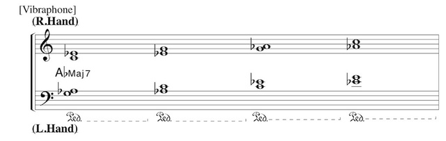 たった一つのコードサウンドを出すだけでも、最低限はこのくらいの知識が無ければコードミュージックの中でのマリンバを自由に乗りこなす事は出来ないのを知っているプレーヤーは少ない。楽器に対して直観的すぎる傾向があるのがマリンバを狭い世界に閉じ込めている要因かもしれない。