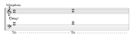 Vibraphone-2 は(個人的にですが) トレモロを使ってバックグラウンドにストリングス・セクションのような意図的に強弱の利くサスティーンを得たい時に使います。Vibraphone-1ではロールした時のハーモニー感が三度で細切れになるのとロールし辛いのがあります。また、時には片手ロールも組み合わせたりする都合上この位置がバランス的によいのです。