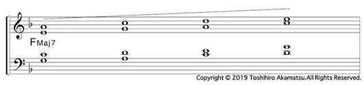FMaj7のヴォイシングとしてここに登場する音を集めてみると、